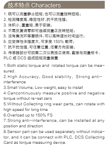 檢測電動機、內燃機等旋轉動力設備,輸出扭矩及功率;檢測各種機械加工中心、自動機床的工作過程中的扭矩;檢測各種旋轉動力設備系統所傳遞的扭矩及效率;可用于制造粘度計、電動、氣動、液力扭力扳手。